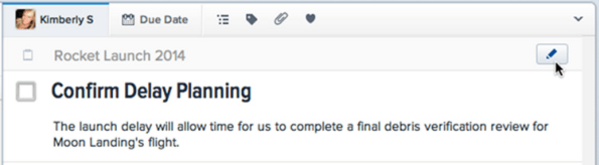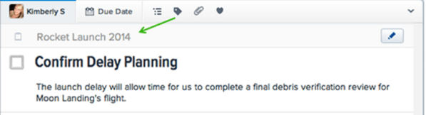 ‘Confirm Delay Planning(연기 일정을 확인하라)‘라는 ‘일감’은 ‘Rocket Launch 2014(제품출시)‘라는 프로젝트에만 속해 있습니다.