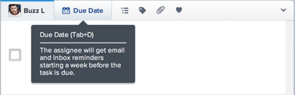 툴팁은 이러한 단축키에 대한 설명을 포함하기에 최적의 요소라고 볼 수 있습니다. 툴팁은 활성화 이전까지는 화면에 많은 공간을 차지하지 않기 때문입니다. ‘아사나’에서는 키보드 단축키를 위한 모디파이어 키로 ‘탭’을 사용합니다. 왜냐하면 ‘컨트롤’, ‘알트’, 쉬프트’, ‘커맨드’ 키 등은 이미 다른 시스템에 의해서 선점되어 사용되는 경우 많기 때문입니다.