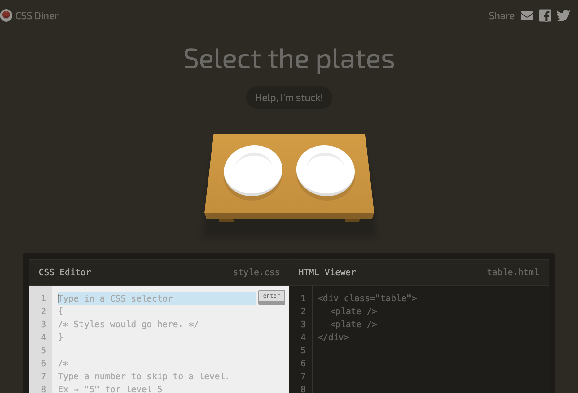 CSS Diner는 CSS 선택자를 학습할 수 있는 재미있는 게임입니다. 다양한 선택자를 사용하여 음식 아이템을 올바른 위치로 이동시키며 기본기를 탄탄하게 다질 수 있습니다.
