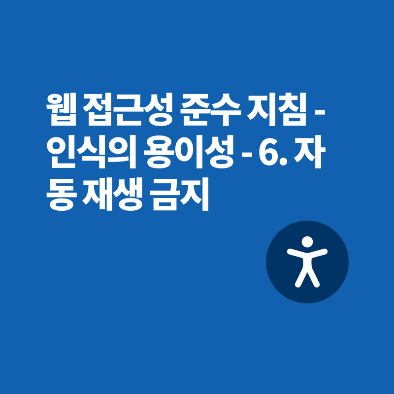 자동 재생음을 제공하지 않도록 합니다. 이는 사용자에게 갑작스럽고 원치 않는 소리가 발생하는 것을 방지하기 위한 것입니다. 예를 들어, 웹페이지에 들어가자마자 3초 이상의 배경음이나 동영상이 자동으로 재생되는 경우, 사용자가 이를 제어할 수 없는 상황에서 불쾌감을 느낄 수 있습니다.