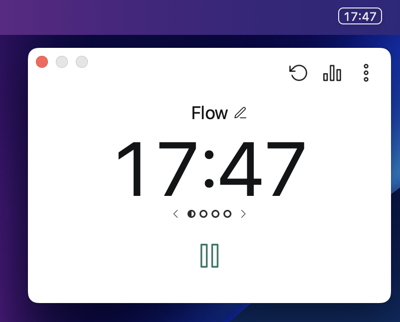 포모도로 타이머 용도로 사용하거나, 아니면 시간을 자유롭게 조정하여 나에게 맞는 형식의 시간관리 타이머로 활용할 수 있습니다. 이 또한 필요한 기능만 접근성 높은 사용자 경험을 제공함으로써, 시간관리 외에 소요되는 수고를 최소화할 수 있습니다. 사용 방식은 여타 포모도로 어플리케이션들과 유사합니다. 집중할 시간을 정할 수 있고, 휴식 시간 또한 함께 정할 수 있습니다. 반복 횟수를 정할 수 있고, 관련 통계 자료도 간단하게 제공하여 CSV 등의 파일로 추출이 가능합니다.
