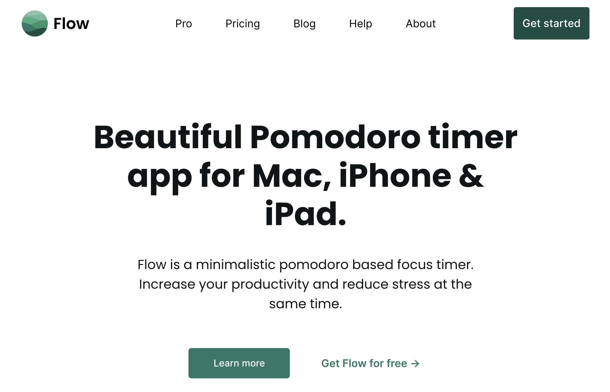 플로우 앱은 무척이나 직관적이고 간결한 사용성을 바탕으로, 시간관리 본연의 기능을 가장 잘 제공하는 서비스라고 할 수 있습니다. 인터페이스를 보면 알 수 있듯이 집중하고자 하는 시간, 재생/정지 버튼이 주요 구성요소의 전부입니다.