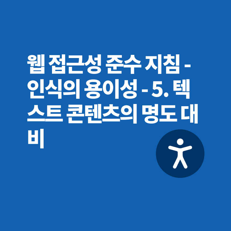 이미지 내부에 포함된 텍스트 역시 배경과의 명도 대비가 4.5 대 1 이상이 되도록 제공해야 합니다. 이는 이미지에 포함된 중요한 정보가 사용자에게 명확하게 전달되도록 하기 위함입니다.