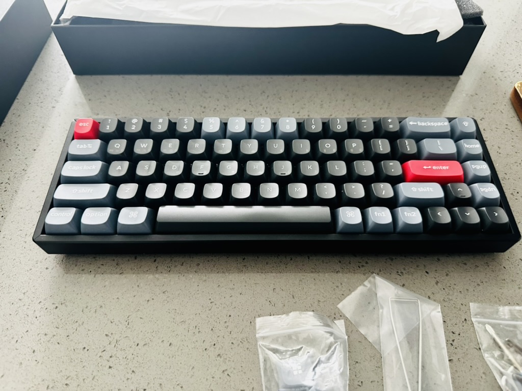 K6 Pro의 디자인은 기존 키크론 K 시리즈와 큰 차이는 없습니다. 외관상으로는 거의 비슷하지만, 키캡의 세부적인 부분에서는 차이가 느껴집니다. 특히 키캡의 손가락 접촉 면적이 더 넓어져 타이핑할 때의 편안함이 한층 더해졌습니다. 이러한 디자인 변화는 저소음 스위치와 매우 잘 어울리며, 사각사각 눌리는 타건감을 제공합니다. 다만, 전체적인 디자인 변화가 거의 없다는 점에서 아쉬움을 느낄 수 있습니다. 기존 디자인을 좋아했던 사용자라면 큰 문제가 되지 않겠지만, 새로운 변화를 기대했던 사용자에게는 다소 실망스러울 수 있습니다.