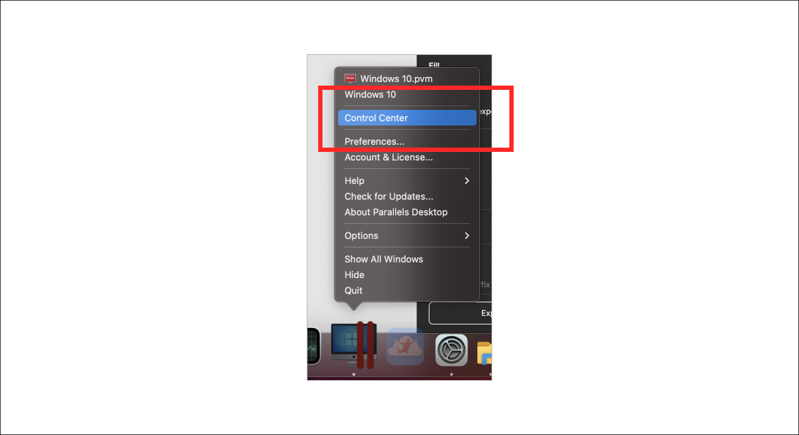 - 패러럴즈의 ‘Control Center’ 실행