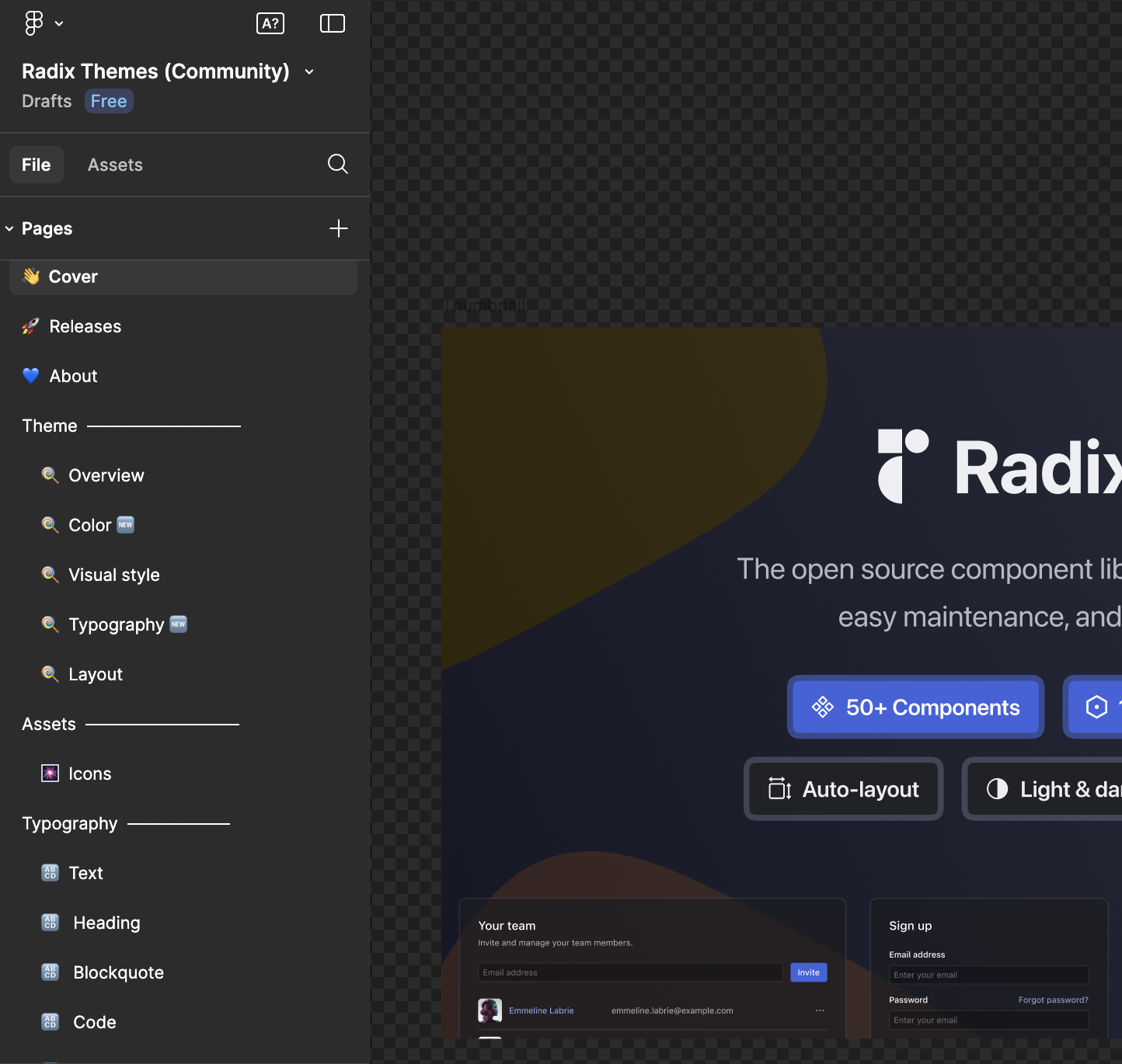 - 템플릿 복제: Radix Themes Figma 페이지에 방문하여 파일을 복제하세요.