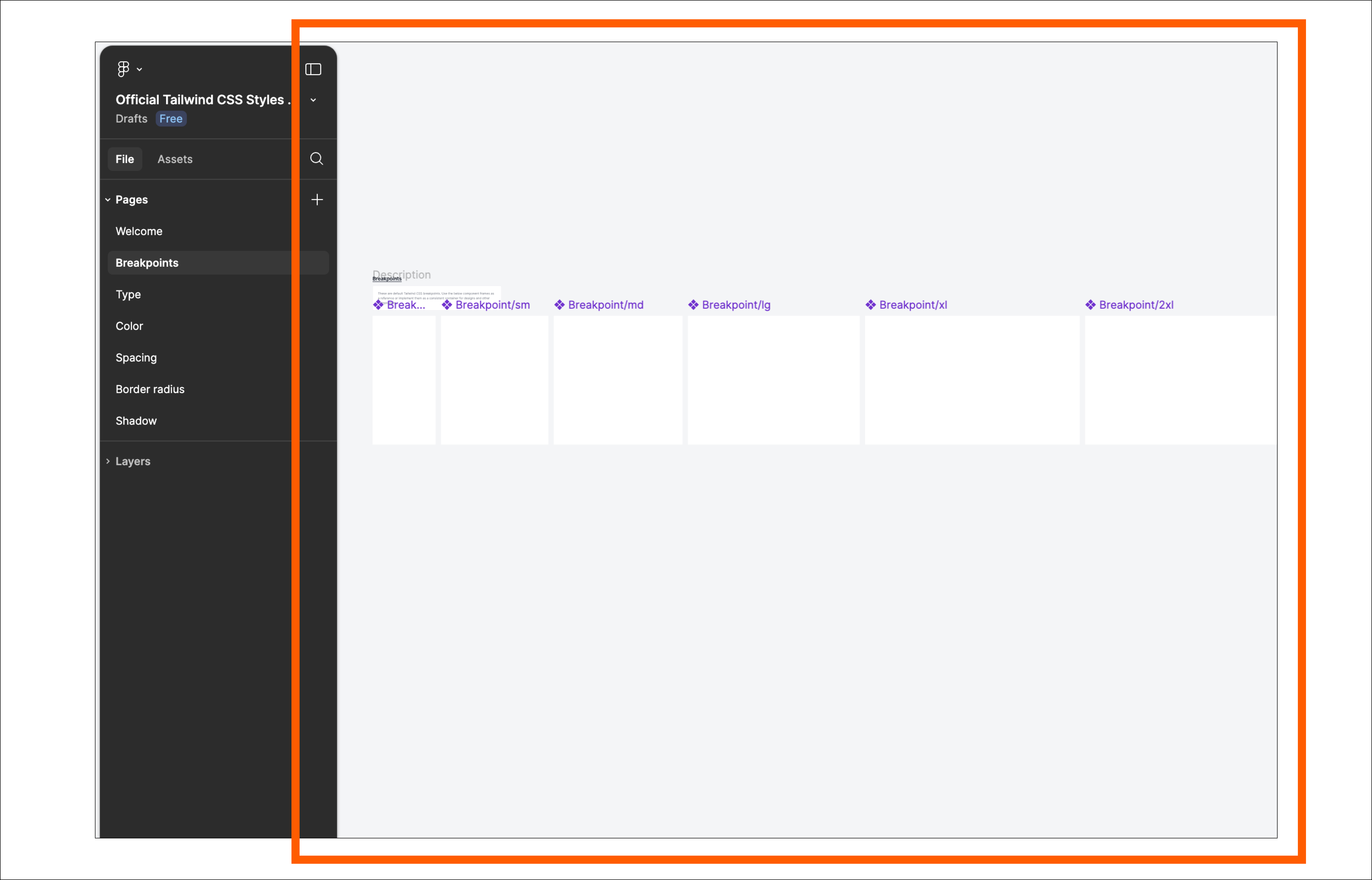 웹 프로젝트는 반응형과의 싸움이 아주 골치 아플 때가 많습니다. 특히 디자인 할 때에도 많은 리소스와 시간이 소요됩니다. 몇 px로 반응형을 잡아야 하는지에서부터, 브레이크포인트는 어떻게 해야 하는지까지 크리에이티브 업무 외적으로 또 반복적으로 발생하는 업무들입니다. 테일윈드는 가장 범용적으로 쓰이는 반응형 레이아웃을 제공해 주기 때문에 이를 활용하여 디자인을 하면 됩니다. 필요하지 않은 브레이크포인트는 사용하지 않아도 되며, 이 기준에 맞춰서만 디자인이 된다면 이미 토큰화된 규격에 대해서 개발자도 인지를 하고 있을 것이기 때문에 개발자와 불필요한 반응형 구간 논쟁을 피할 수 있습니다.