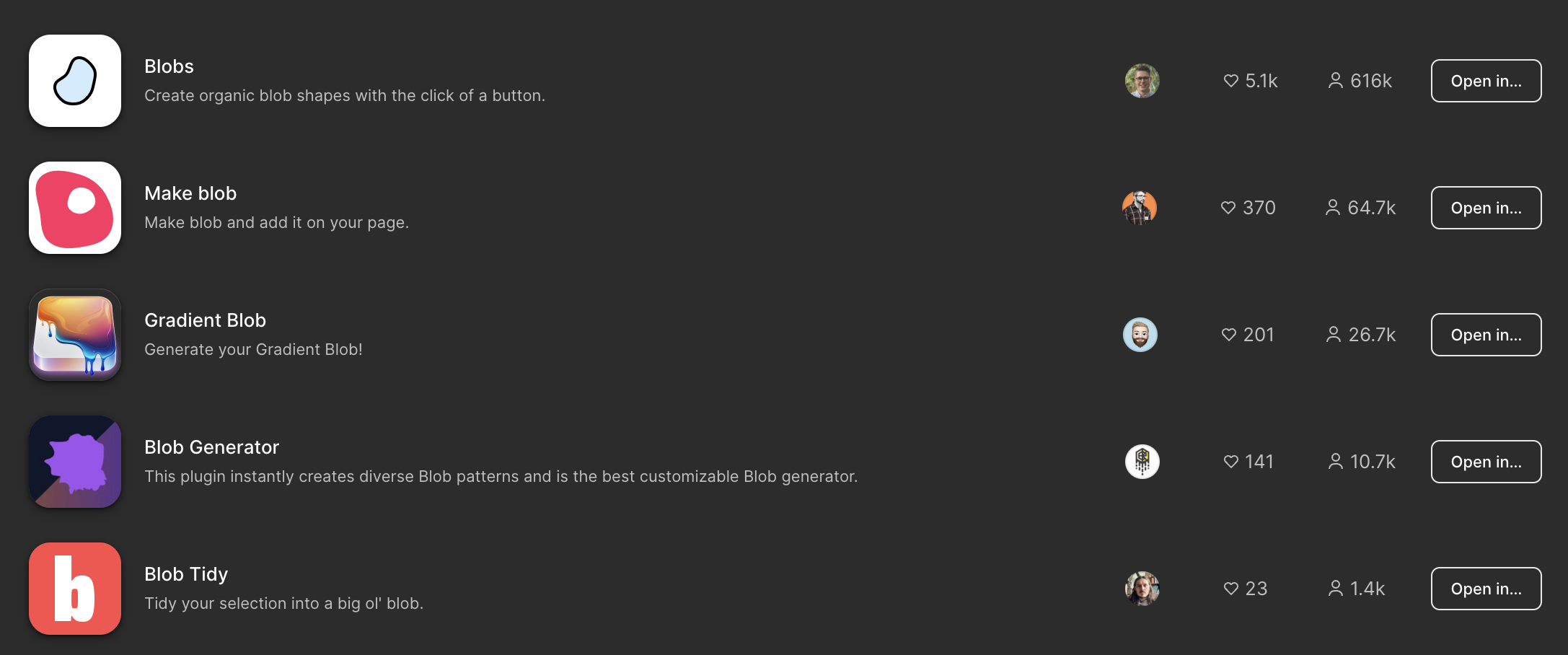피그마에서 블롭을 생성하는 방법은 여러가지가 있습니다. 직접 만들어도 되지만, 이를 지원하는 플러그인이 이미 마켓에 여러가지가 있습니다. 이 포스트에서 소개할 플러그인은 가장 다운로드 수가 많은 'Blobs'가 아닌 'Make blob'이라는 플러그인입니다. 다른 블롭 생성 플러그인을 모두 사용해 보았지만, 결과적으로 'Make blob'이 가장 사용하기도 쉽고, 결과물도 안정적으로 산출해 주었습니다.
