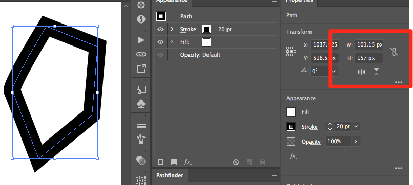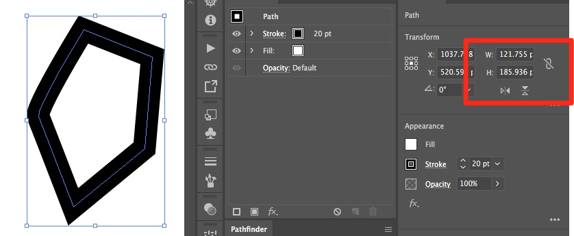 인터페이스 상 약간의 혼동 요소가 있는 부분은, path의 경우 위와 같이 전체 영역에 대한 bounding box를 정상적으로 표시해 주나, shape(기초 도형)의 경우 bounding box는 정상적으로 표시가 되지 않는 경우가 있을 수 있다. 다만 이 경우에도 실제 dimension은 전체 영역을 포함한 확장된 크기로 계산이 되니, 실제 preview bounds가 동작한다고는 볼 수 있다.