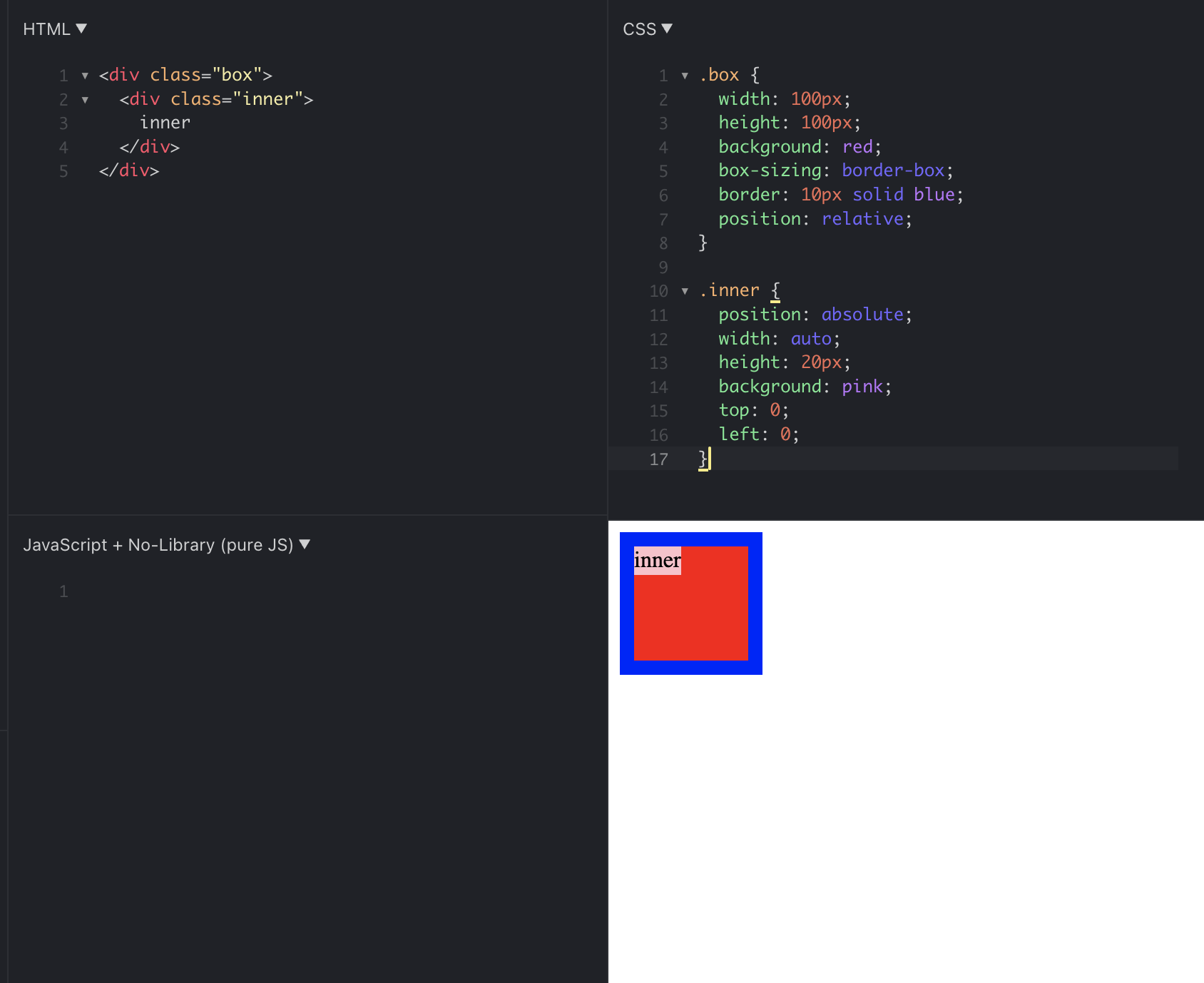 Border 속성이 박스의 콘테이닝 영역에서 제외된다는 점은 CSS 코딩에서 유념해야 할 border와 박스모델의 구성원리입니다. 위 예제에서 자식 엘리먼트를 border 위에 배치하는 등의 스타일링을 하고자 한다면, 1) 별도 border 엘리먼트를 만들어서 겹침 표시하거나 2) outline, box-shadow와 같은 border와 같은 효과를 낼 수 있는 스타일 속성을 활용하는 것입니다.