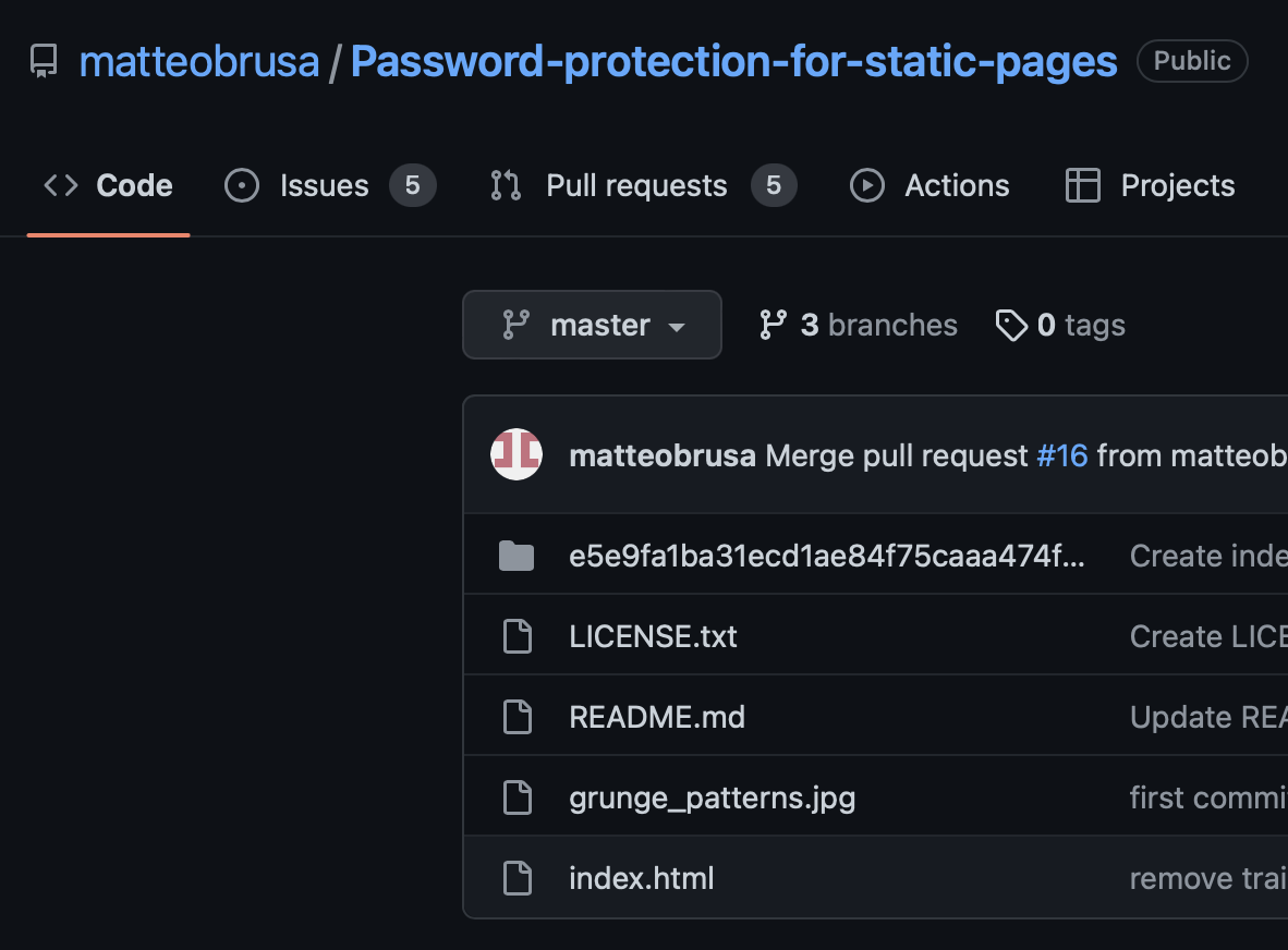 - 프로젝트 레포지토리: https://github.com/matteobrusa/Password-protection-for-static-pages/