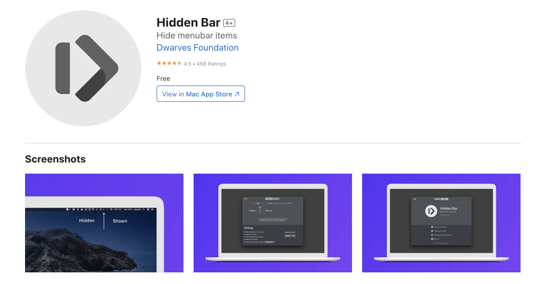 - 무료 사용: Hidden Bar는 Mac App Store에서 무료로 제공되어 모든 Mac 사용자가 이용할 수 있습니다.