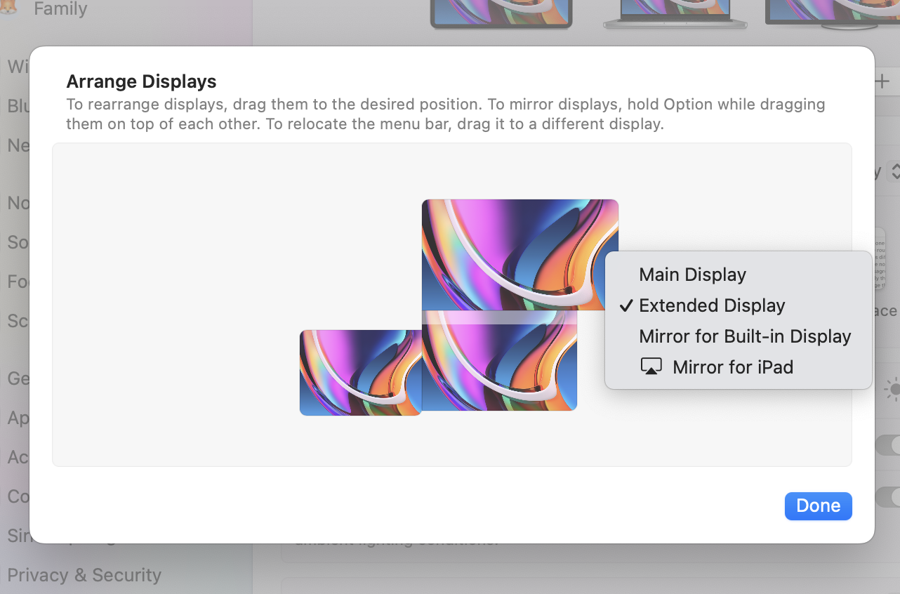 주시야각에 위치한 디스플레이를 메인화면으로 설정하면, 일단 MacOS에서 제공하는 위젯(widget) 등의 송출 위치를 지정할 수 있습니다. 더불어 독이나 노티피케이션 센터의 출력 위치가 기본으로 메인화면을 시작점으로 두기 때문에, 운영체제 내에서 활용되는 여러 유동적 패널들의 관리가 필요한 경우에도 메인화면 변경은 효과적일 수 있습니다.