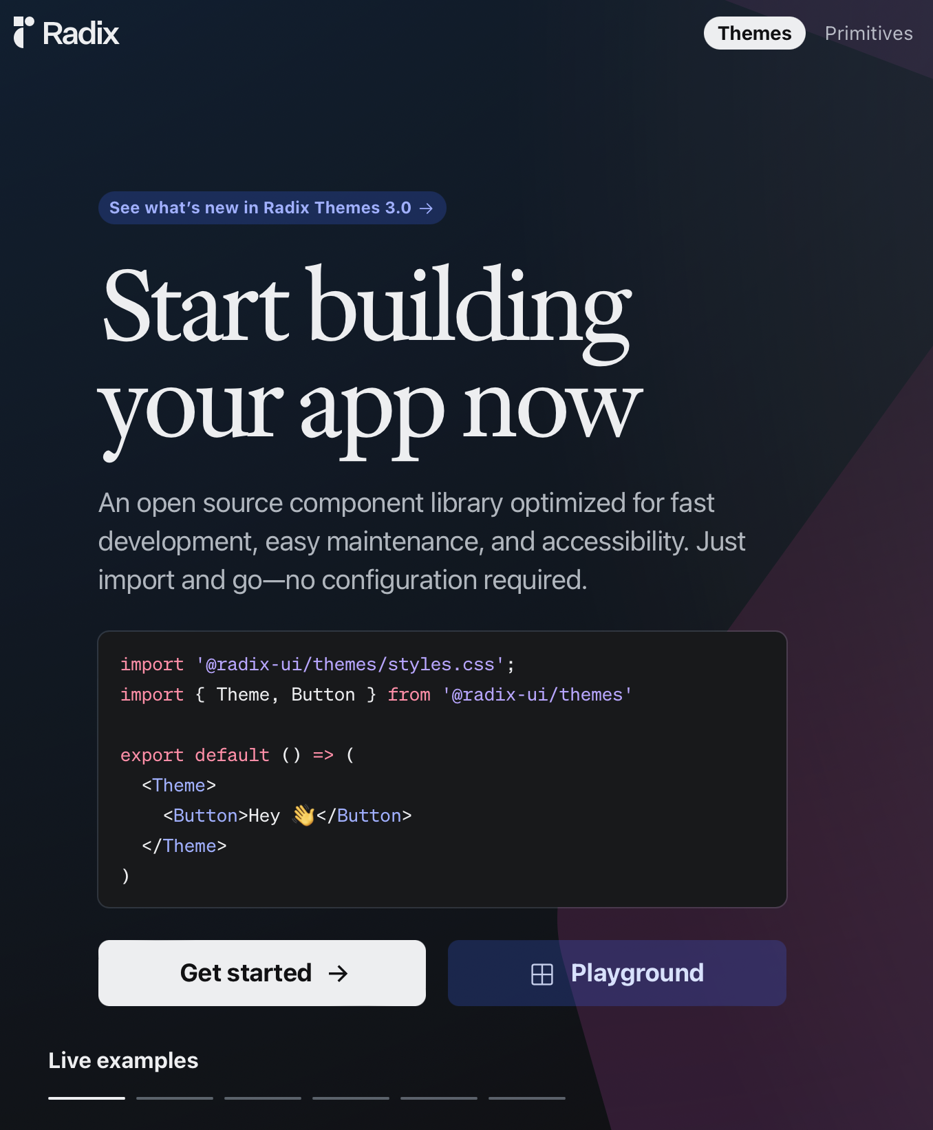 import { Theme, Button } from '@radix-ui/themes';
