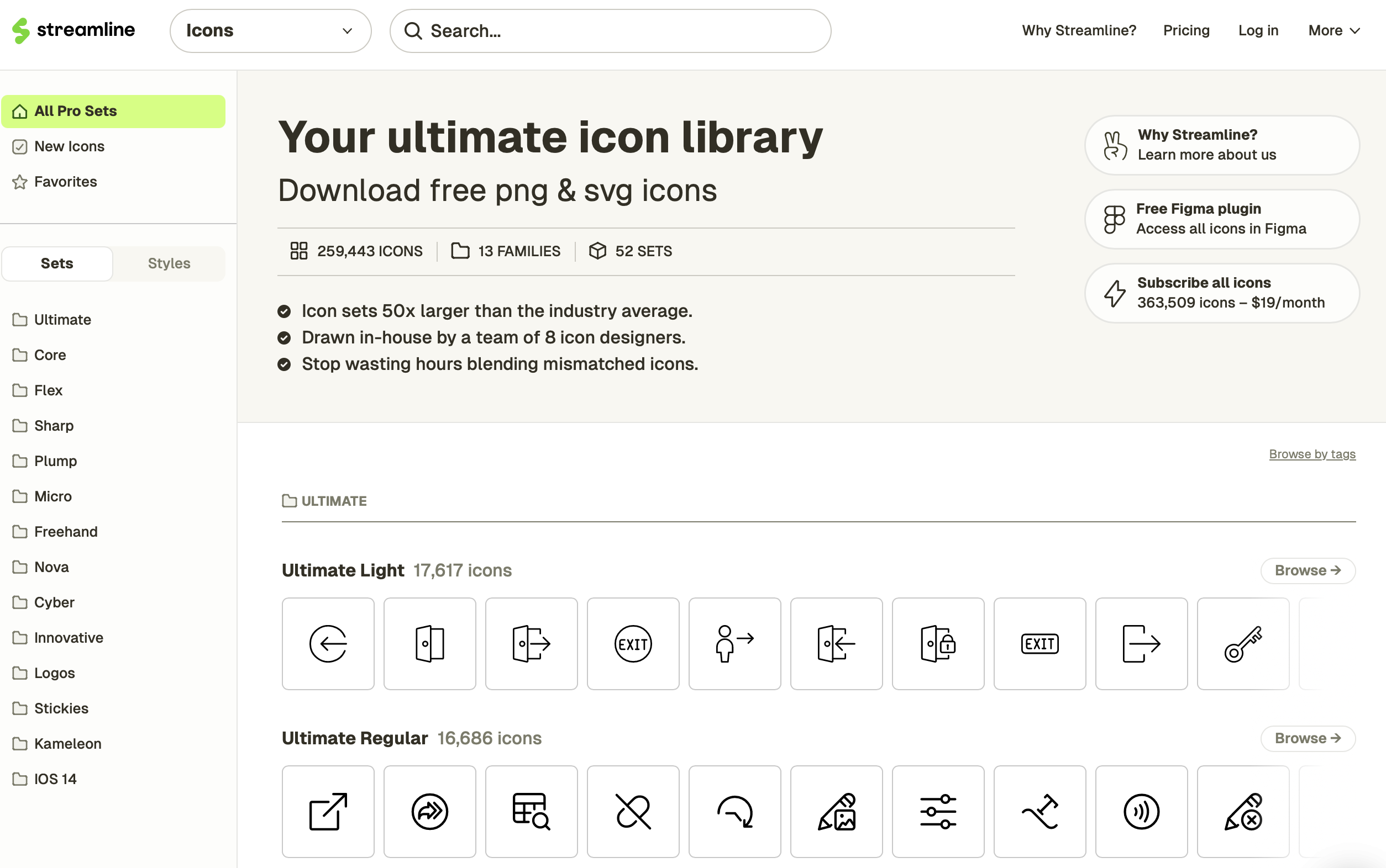 스트림라인이 좋은 점 중 하나는 ‘무료’로도 충분히 맛볼 수 있다는 점입니다. 물론 더 많은 아이콘이나 고급 기능을 누리려면 유료 플랜을 고려해야 하지만, 처음부터 결제 정보가 필요한 건 아니에요. 이메일 가입만으로 바로 무료 리소스를 다운받아 쓸 수 있고, 생각보다 쓸 만한 아이콘들이 꽤 많습니다.