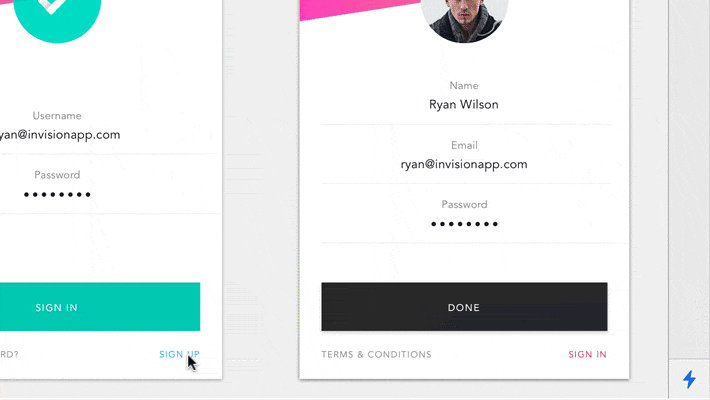 디자인을 마친 후 프로토타이핑을 시작한다고 합시다. 포토샵의 경우 인비전에 접속하여, 영역을 지정하며 프로토타이핑을 제작하기 시작해야 합니다. 스케치 같은 경우에는 인비전의 Craft의 기능을 활용하여 캔버스 상에서 바로 프로토타입을 제작할 수 있습니다. Craft 외에도 스케치의 경우 아트보드 상에서 GUI를 활용해서 쉽게 프로토타입을 제작할 수 있는 많은 저작툴을 제공한다는 특징이 또한 있습니다.