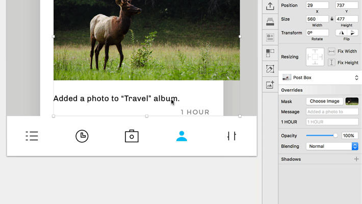 포토샵의 스마트오브젝트는 여러 개체가 존재할 경우, 변형된 버전을 만드는 것이 매우 까다롭습니다. 스케치의 Overrides 기능의 경우, 그러한 유니크한 심볼 인스턴스를 만드는 데에 매우 손쉬운 인터페이스를 제공합니다.