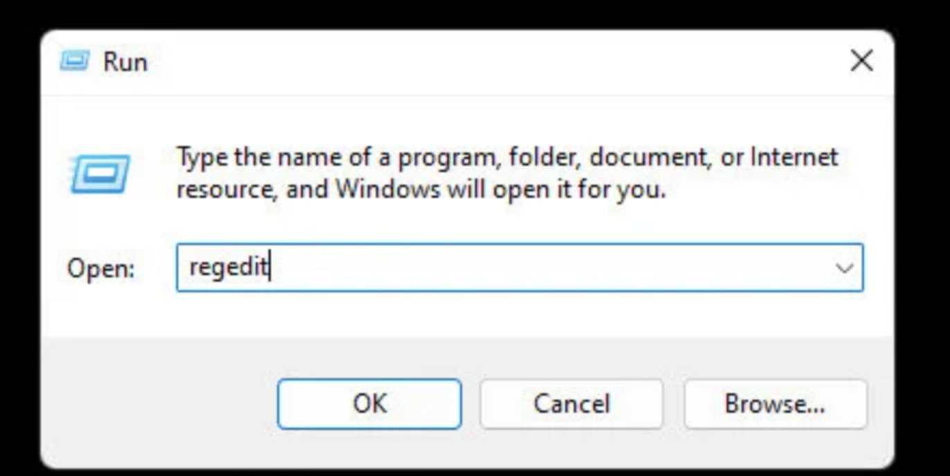 1. 윈도우 시작 버튼 > ‘실행’ 입력 후 ‘regedit’ 입력해 레지스트리 편집기 실행