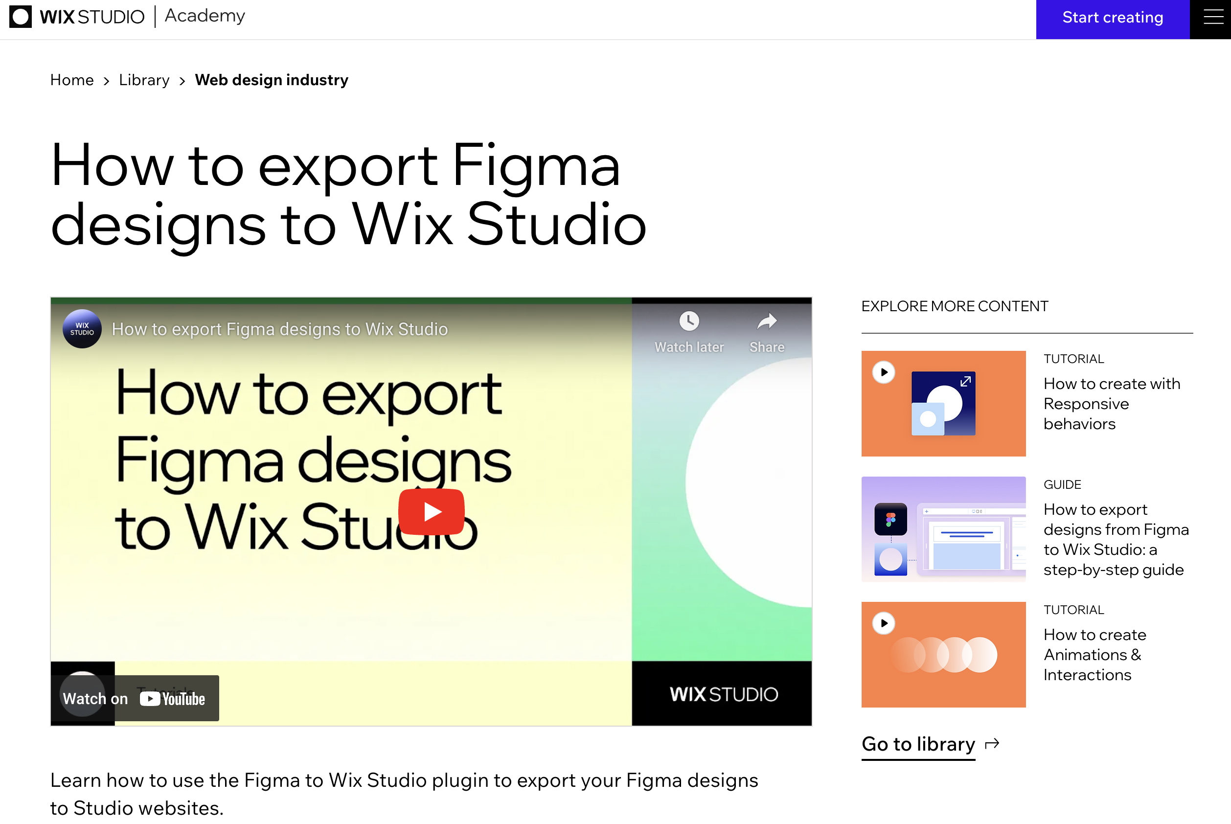 - 상세 가이드 제공: 전용 웹사이트와 유튜브 강의를 통해 세부적인 피그마 활용 웹사이트 제작 방법에 대한 가이드가 게재되어 있어 누구나 손쉽게 해당 내용을 확인하고 학습할 수 있습니다(관련 웹사이트: https://www.wix.com/studio/academy/tutorials/how-to-export-figma-designs-to-wix-studio).