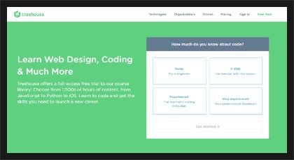 - 트리하우스는 프론트엔드개발/디자인 중심의 강의를 제공하는 웹사이트입니다. 더불어 기초적인 서버 관련 내용도 이 사이트에서는 다루고 있습니다. 최신 기술 관련 업데이트가 매우 빠르며, 동영상 강의의 수준이 높은 편입니다. 또한 각 내용들이 체계적으로 잘 조직되어 있으며, 뱃지 등의 게임요소로 학습에 대한 동기부여를 자연스럽게 주는 장점이 있습니다. 모바일 최적화도 잘 되어 있어서 모바일 상에서도 온라인 학습을 꾸준히 이어 나가고 있습니다. 또한 웹브라우저 상에서 실습에 최적화된 기능을 제공하기 때문에 쉬운 따라하기 또한 가능합니다. 월 30달러 정도의 비용을 지불해야 합니다.