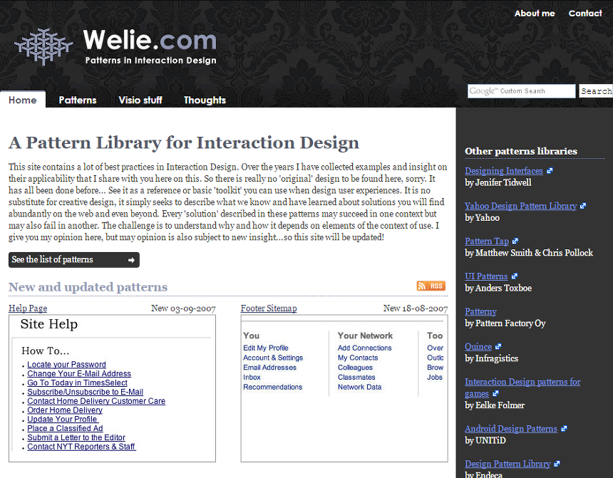 - WELIE Interaction Design Patterns : http://www.welie.com