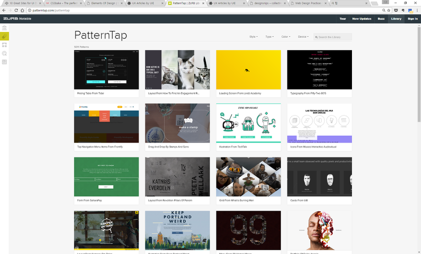 - Pattern Tap (Zurb Notable) / http://patterntap.com/patterntap