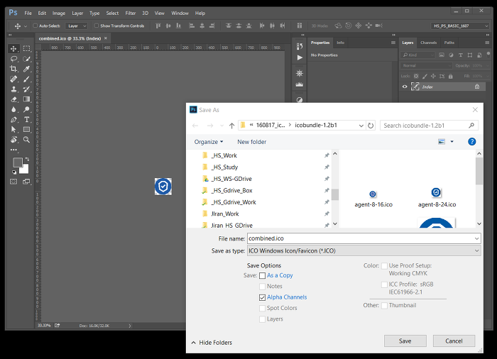 3. 포토샵을 실행합니다. ICO파일로 열고, 저장할 수 있음을 확인할 수 있습니다.
