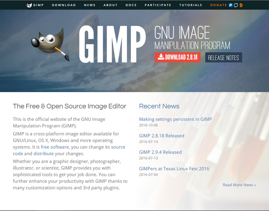 - GIMP 다운로드 페이지 : https://www.gimp.org/